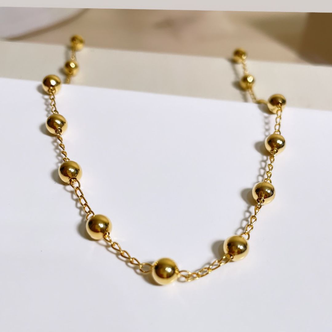 Corrente Bolinhas Dourado é a peça perfeita para adicionar um toque de elegância a qualquer look, seja em ocasiões formais ou mais casuais. Design das esferas confere um aspecto sofisticado e diferenciado ao colar, tornando-o um verdadeiro destaque.