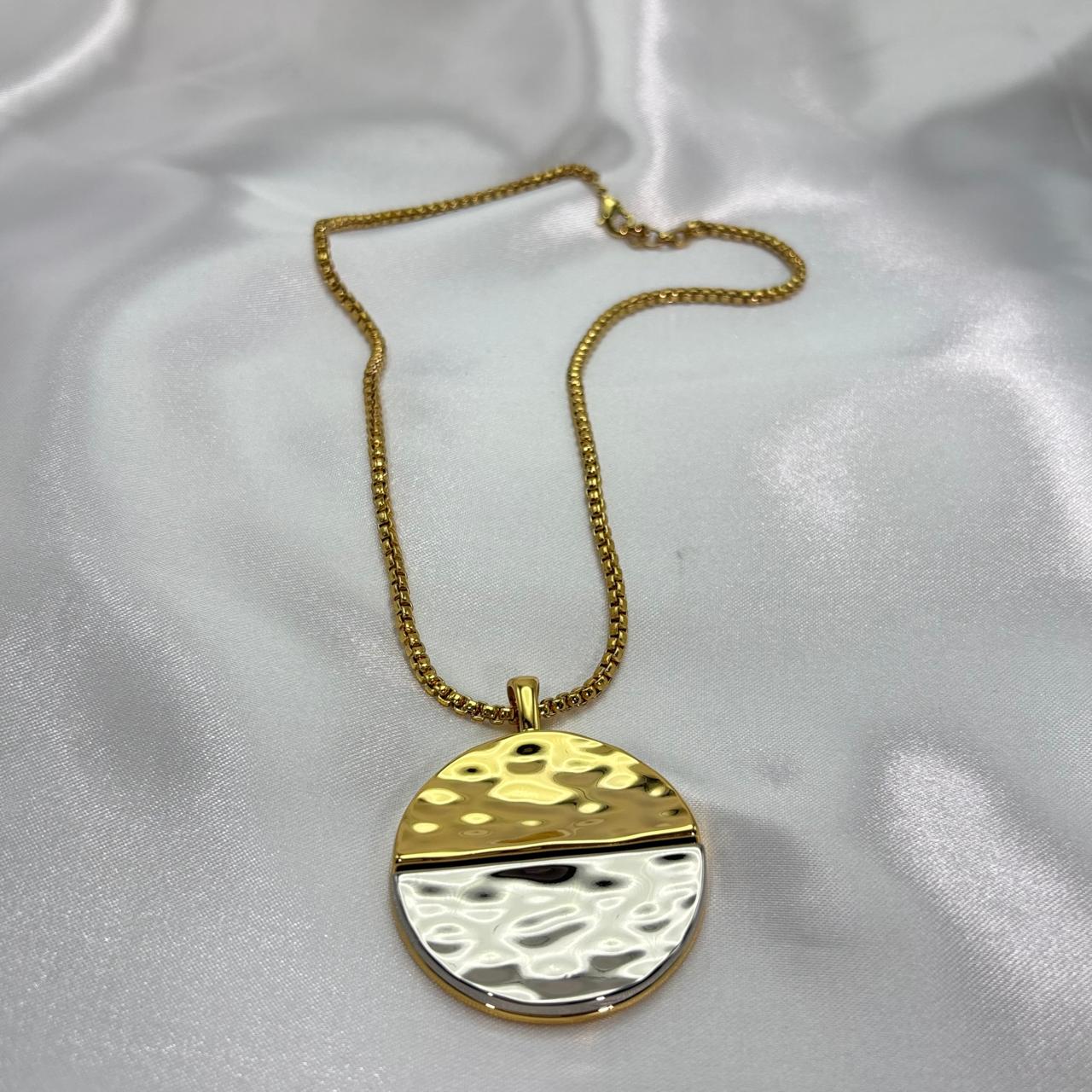 Colar Pingente Martelado Dois Banhos é uma peça que exala sofisticação e romantismo. Com um design marcante e acabamento em verniz italiano e Banho a Ouro em 07 camadas de milésimos. Este colar é ideal para quem deseja um acessório que seja o destaque de qualquer look. O pingente em formato de coração cheio é um símbolo de amor e elegância, tornando este colar perfeito para ocasiões especiais ou para adicionar um toque de glamour ao dia a dia.