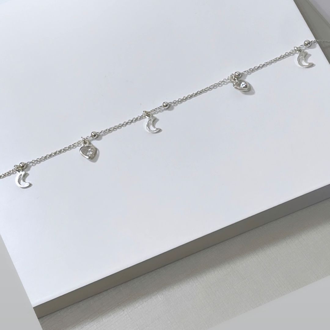 Tornozeleira Prata Bolinha, Lua Vazada e Coração